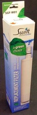 Eco-Friendly Green Water Filter Replacement. Replaces Whirlpool, Sears, Kenmore,water filter cartridge, 4396510. Help save the environment with this eco-friendly "green" filter.Replaces part numbers: 4396510, 4396510P, 4392922, 8212491, 2255520, WF-NLC240V, WFNLC240V, WF-LC400V, WFLC400V, WF-NLC250, WFNLC250, 4396548, 4396164, 2203221, 2255709, 491849, 46-9010, 469010, 9010, 6010P, 04609010000. Compared to conventional carbon-based filters, Swift green filter products are environmentally friendly. Conventional carbon filters are produced by a burning process called open pit charring which releases pollution and greenhouse gas emissions into the air. Green Filter components are produced with a new technology that carbonizes dried coconut shells in an enclosed self-sustaining system while capturing and converting the emissions into useful thermal energy.Operating Specications:Maximum operating temperature ....................38°C/100°FMinimum operating temperature...................... 0.6°C/33°FMax. working pressure .................................689 kPa/100 psiMin. working pressure.................................... 140 kPa/20 psiRated capacity......................................946 litres/250 gallonsFlow rate .........................................................1.9 lpm/0.5 gpmTested by an independent laboratory.Estimated % reductionLead Removal 99%Cysts Removal 99%Chlorine Taste & Odor Removal 96%Turbidity Removal 98%Asbestos Removal 99%Atrazine Removal 94%Alachlor Removal 99%Lindane Removal 99%2,4-D Removal 98%Mercury Removal 93%Toxaphene Removal 93%P-Dichlorobenzene Removal 99%B enzene Removal 96%